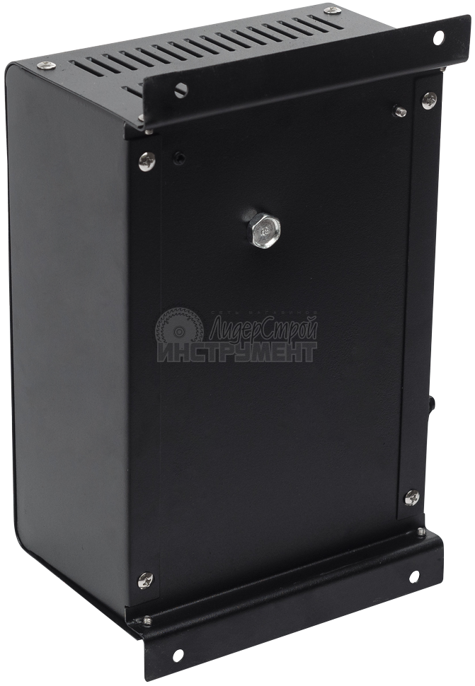 Фильтрует помехи без искажения внешнего сигнала, что позволяет обслуживать чувствительные приборы. Стабилизация ступенчатая, достигается измерением, сравнением входного напряжения с нужным значением и коммутацией отводов автотрансформатора при помощи реле. Высокая скорость срабатывания - 5-7 мс. Выдерживает нагрузку до 10 кВт. Отключается при превышении предельных значений нагрузки на входе. Подача питания возобновляется при возврате входного напряжения в рабочий диапазон (140-260 В). Показания встроенных вольтметров выводятся на дисплей. Выключатель "Байпас" на лицевой панели подключает нагрузку к сети в обход системы стабилизации. Охлаждение принудительное. Устойчив к высоким температурам окружающей среды. Производитель рекомендует использовать для настенного монтажа кронштейн, поставляемый в комплекте со стабилизатором.