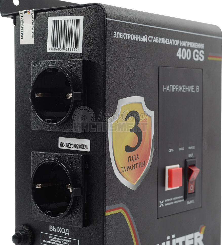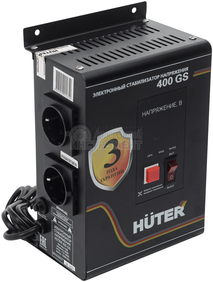 Цифровой однофазный стабилизатор 400GS немецкой марки HUTER предназначен для обслуживания систем сигнализации, газового отопительного оборудования (котлов), блоков управления отопительными системами при нестабильном напряжении сети.