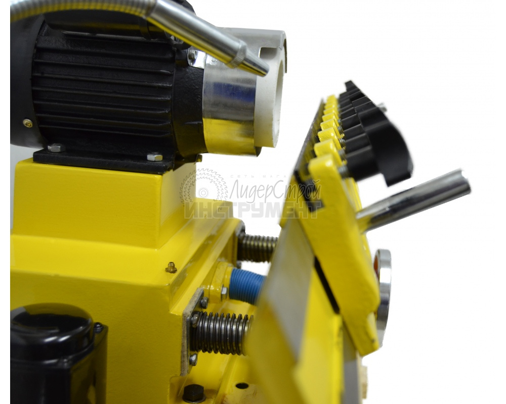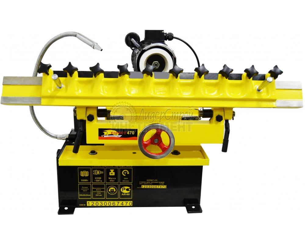 С помощью станка Корвет-470 можно заточить ножи для строгальных станков и рейсмусов длиной до 630 мм под углом 35-55°. Оснащен асинхронным двигателем, развивающим мощность 550 Вт.