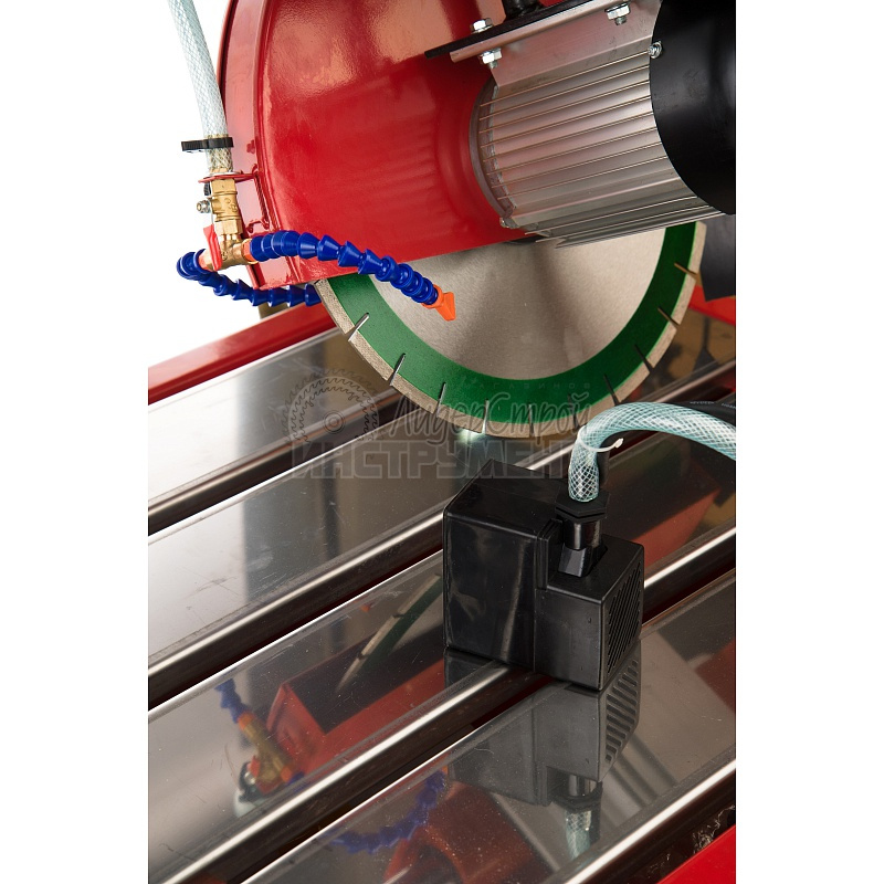 Резка плитки производится с подачей жидкостного охлаждения для защиты от перегрева и поломки станка.