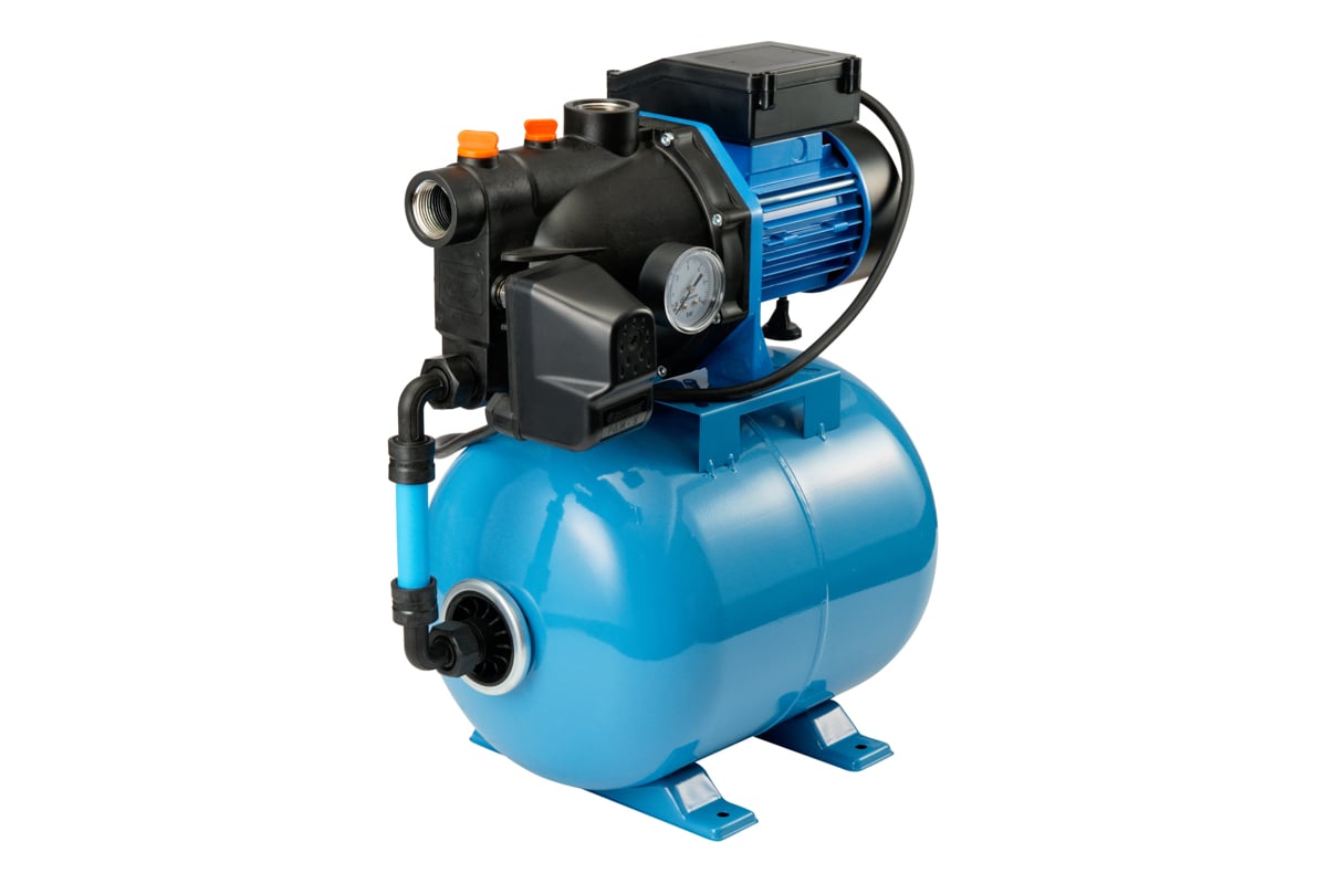 Гидроаккумулятор объемом 24 л снижает нагрузку на двигатель, предотвращает гидроудары и накапливает резервный запас воды на случай отключения электричества.