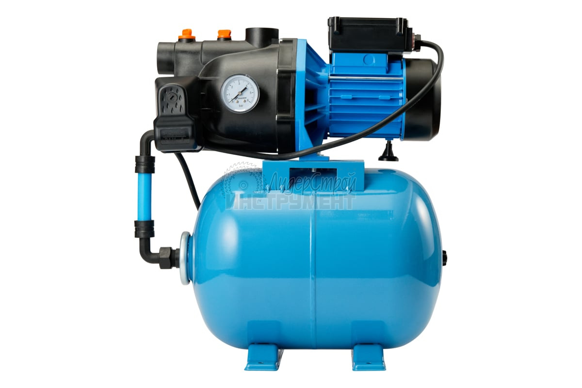 Гидроаккумулятор объемом 50 л предотвращает гидроудары, уменьшает нагрузку на двигатель. Резервный запас воды в баке подается в случае отключения электричества.