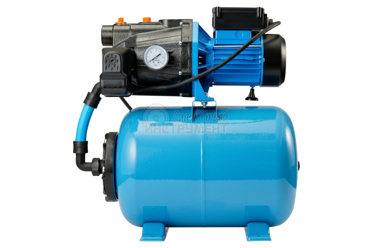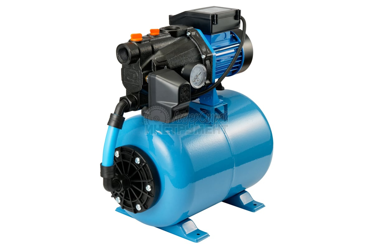 Гидроаккумулятор объемом 50 л предотвращает гидроудары, уменьшает нагрузку на двигатель. Резервный запас воды в баке подается в случае отключения электричества.