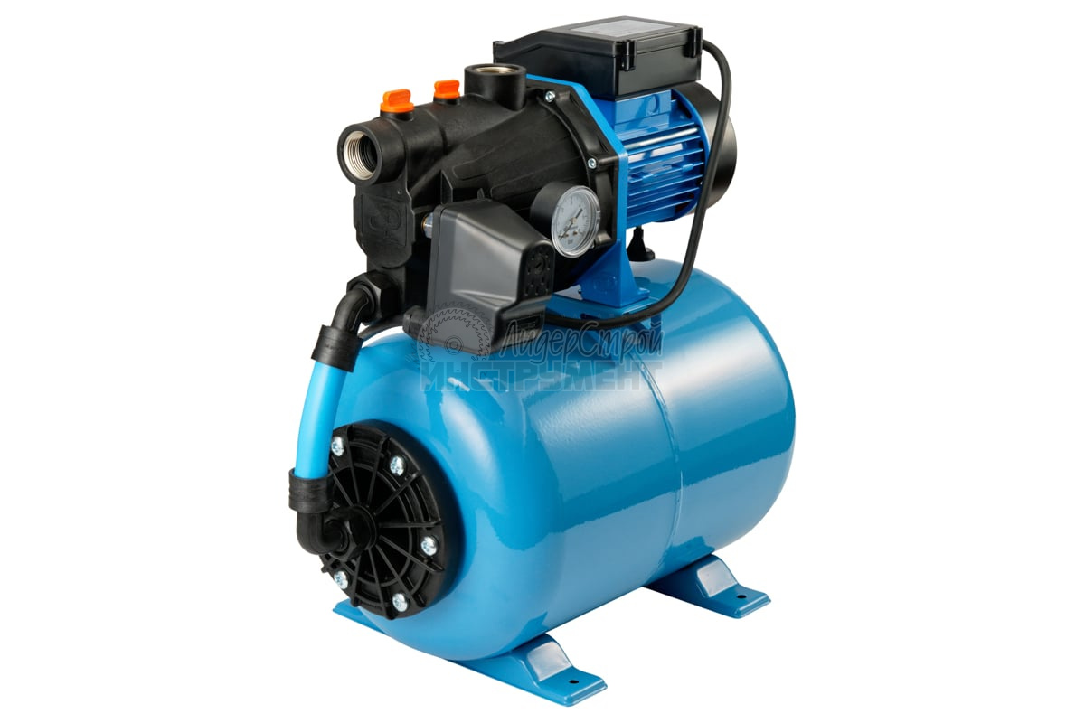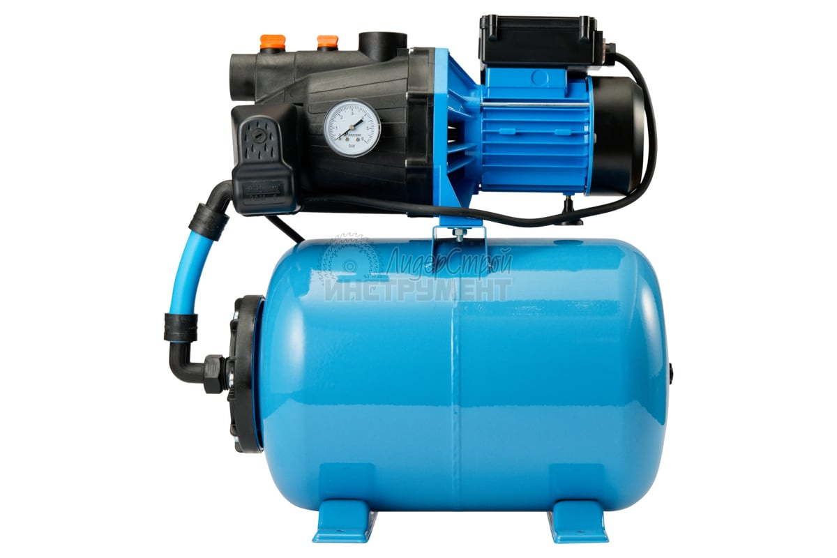 Гидроаккумулятор объемом 50 л предотвращает гидроудары, уменьшает нагрузку на двигатель. Резервный запас воды в баке подается в случае отключения электричества.