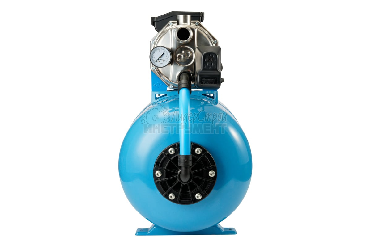 Гидроаккумулятор объемом 24 л снижает нагрузку на двигатель, предотвращает гидроудары и накапливает резервный запас воды на случай отключения электричества.