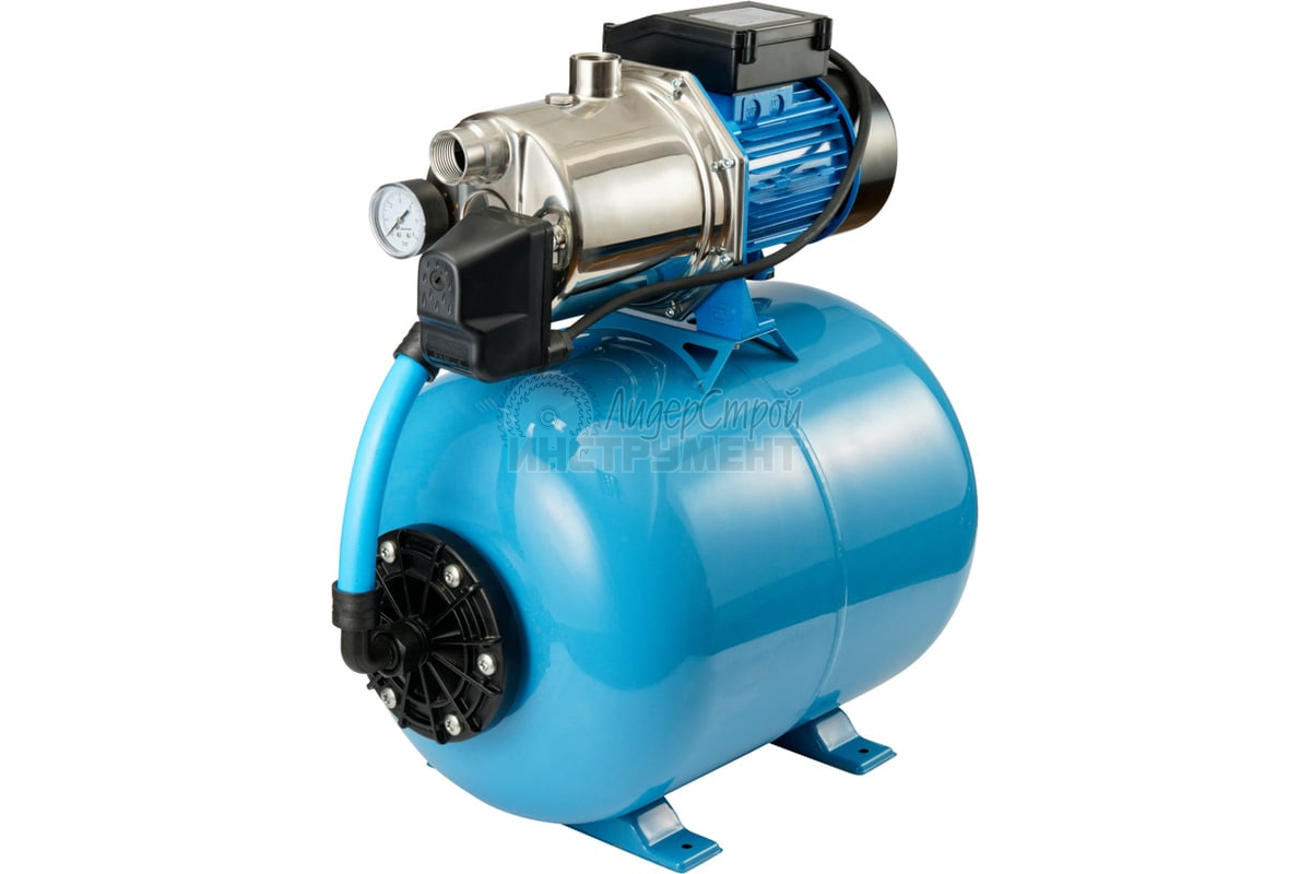 Гидроаккумулятор объемом 50 л предотвращает гидроудары, уменьшает нагрузку на двигатель. Резервный запас воды в баке подается в случае отключения электричества.