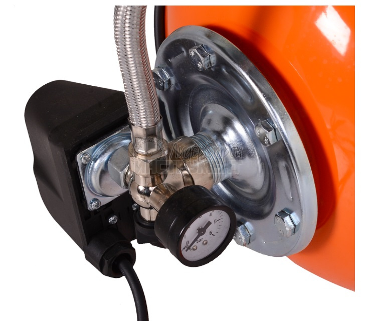 Датчик давления отвечает за автоматическое включение и отключение насоса. Барометр помогает следить за уровнем давления. Машина оснащена надежным асинхронным двигателем мощностью 800 Вт с короткозамкнутым ротором, трубами Вентури, встроенным эжектором. Благодаря гидробаку объемом 19 л предотвращаются гидроудары и накапливается резервный запас воды, который подается при отсутствии электричества. Максимальная концентрация твердых частиц в перекачиваемой воде составляет 150 г/м3. Ножки на корпусе отвечают за устойчивость насосного оборудования.