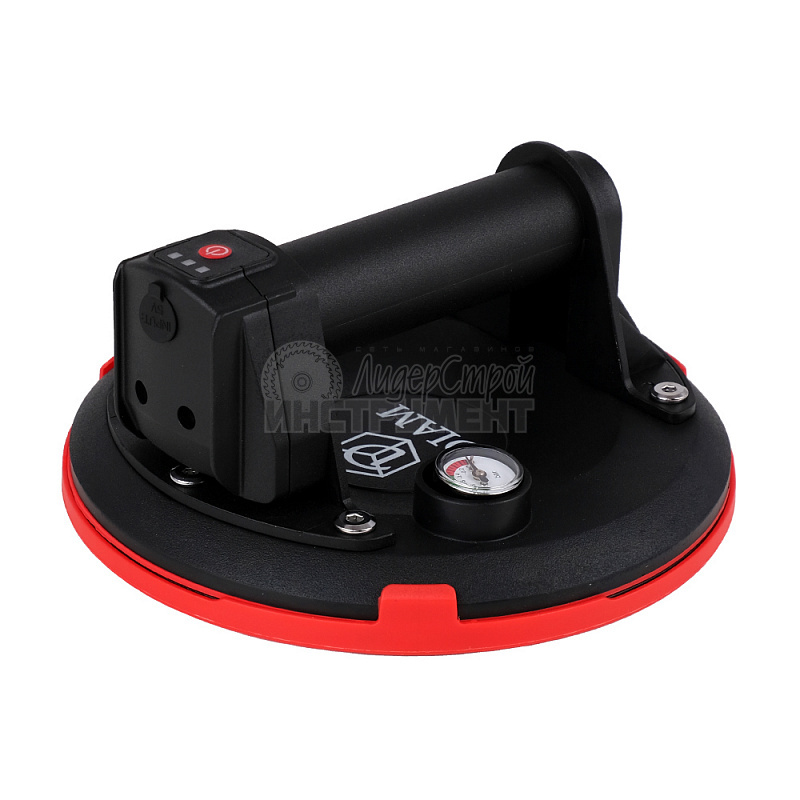 Присоска помповая аккумуляторная DIAM 205 мм предназначена для перемещения материала с гладкими поверхностями и небольшим рельефом, весом до 150 кг. Присоска не предназначена для подъема и перемещения материалов с «агрессивным рельефом». Состоит из прочного пластика, и прочной резиновой нескользящей мембраны. Оснащена встроенным электрическим насосом, датчиком давления и манометром давления для визуального контроля. Датчик давления анализирует силу разрежения воздуха и автоматически включает насос, когда требуется восстановить необходимые параметры вакуума (автоматическая подкачка). Провод для зарядки входит в комплект (блок зарядки в комплект не входит).
