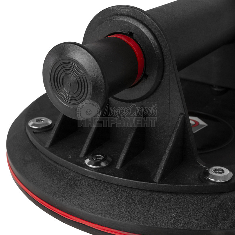 Представляет собой чашу из прочного алюминия, внутри которой помещена прочная резиновая нескользящая мембрана, обеспечивающая разряжение необходимое для надежного удержания изделий весом до 30 кг. Разряжение в ней (вакуум) создается и снимается одним нажатием ручки. Эргономичная рукоятка разработана для большего удобства и безопасности работ.