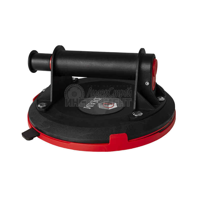 Присоска с ручной помпой «DIAM» (арт. 600134) - предназначена для перемещения материала с гладкими поверхностями весом до 110 кг. Присоска не предназначена для подъема и перемещения материалов с «агрессивным» рельефом. Состоит из прочного пластика, и прочной резиновой нескользящей мембраны. Натяжение присоски обеспечивается нажатием на пневморычаг, являющимся частью рукояти для переноски зафиксированного листа. Контроль создаваемого давления осуществляется за счет красной полосы на поршне.