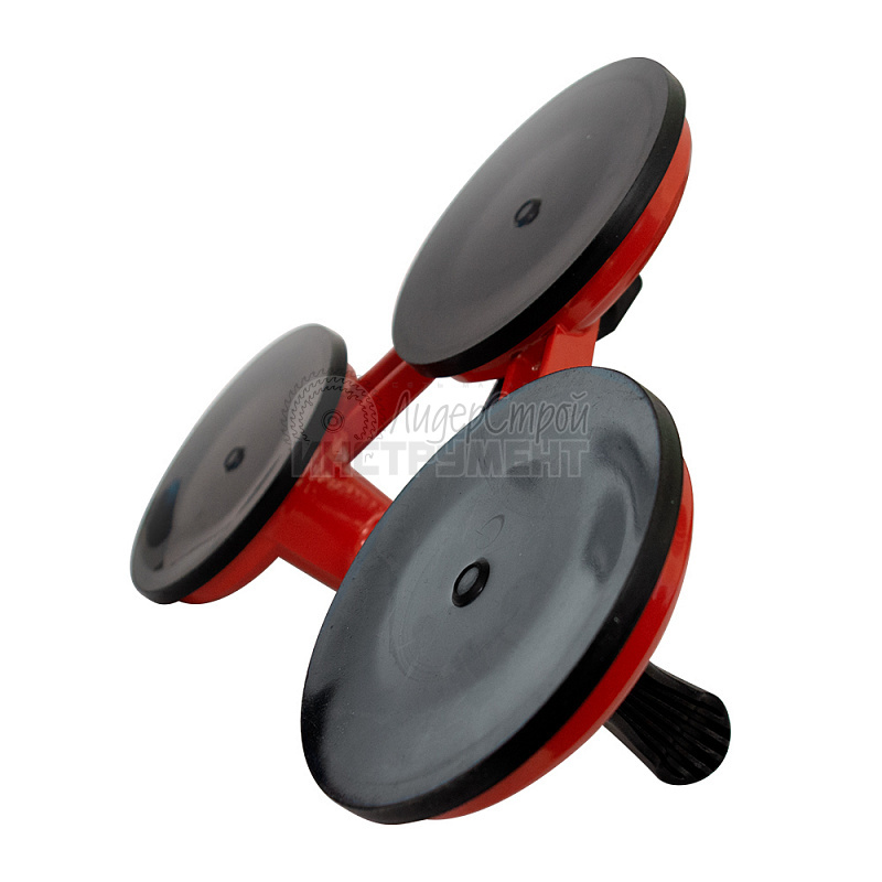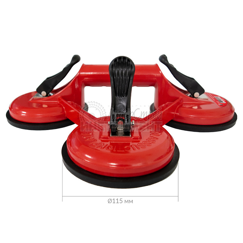 Присоска вакуумная DIAM (3-чашечная) — служит для перемещения и ручной транспортировки гладких пластин из натуральных и искусственных каменных материалов. Кроме того, позволяет надежно и безопасно удерживать и переносить листовое стекло, а также пластик. В разы снижает потери от боя и поломки. Представляет собой чашу из прочного алюминия, внутри которой помещена прочная резиновая нескользящая мембрана. Натяжение присоски обеспечивается поворотом скобы, являющейся частью рукояти для переноски зафиксированного листа.