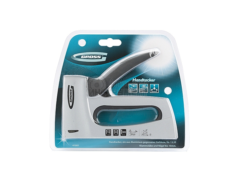 GROSS 41001 ‒ скобозабивной пистолет из прочного алюминиевого сплава. Подойдет для профессионального применения.