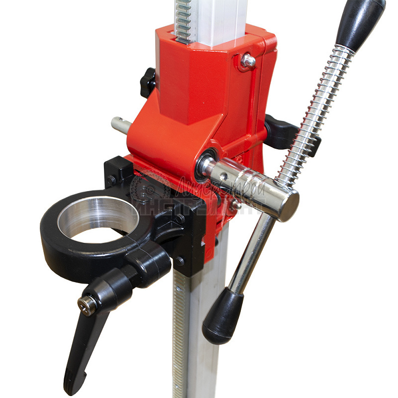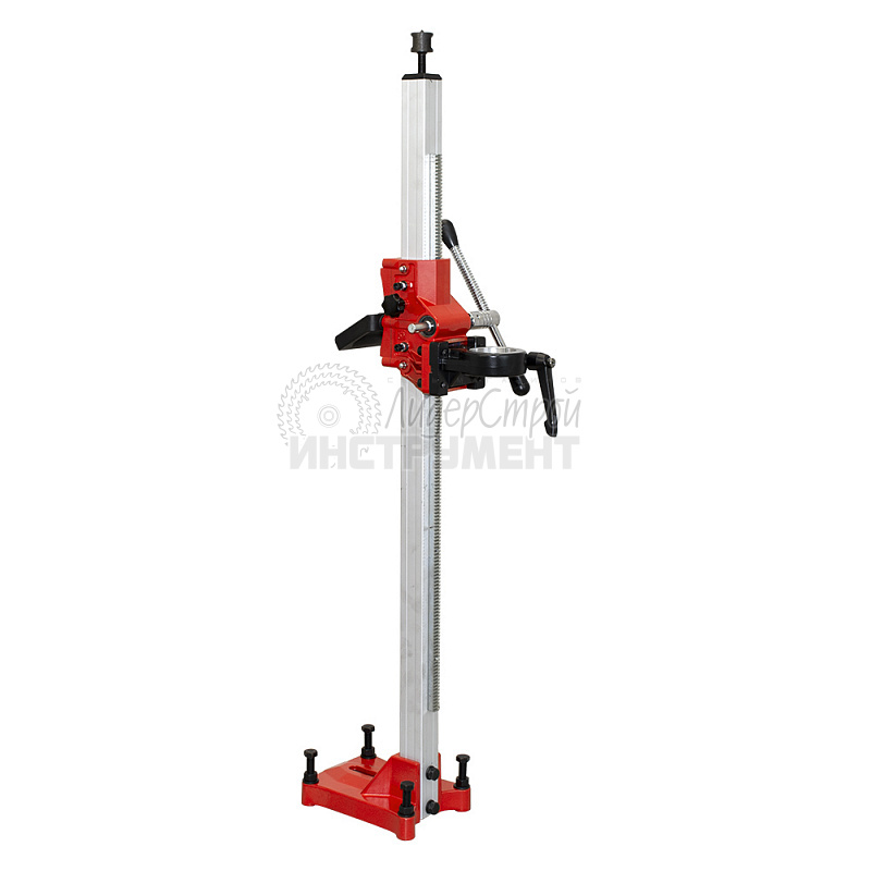Стойка для сверлильной машины DIAM ML-102/2HS  предназначена для установки двигателя сверлильной машины, и дальнейшем использовании для сверления отверстий в бетоне, искусственном и натуральном камне, кирпиче, строительных блоках с использований алмазных коронок. На стойки возможно устанавливать только двигатели специально предназначенные для сверлильных машин для сверления бетона. Двигатель должен подходить по крепежным элементам к креплению стойки. Крепление двигателя - зажимное кольцо диаметром 60 мм. Диаметр сверления 10-130 мм. Сечение стойки составляет 39х39 мм. Вес стойки - 12 кг.