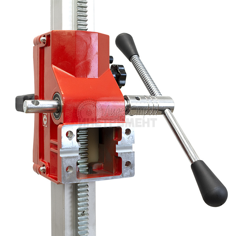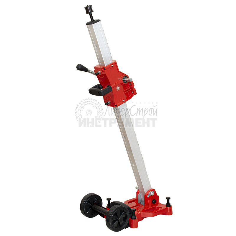 Стойка для сверлильной машины ML-250A предназначается для установки двигателя сверлильной машины, и дальнейшем использовании для сверления отверстий в бетоне, искусственном и натуральном камне, кирпиче, строительных блоках с использований алмазных коронок. На стойки возможно устанавливать только двигатели специально предназначенные для сверлильных машин для сверления бетона. Двигатель должен подходить по крепежным элементам к креплению стойки. Крепление двигателя - 4 болта, через шпонку. Диаметр сверления 10-250 мм. Сечение стойки составляет 49х49 мм. Вес стойки - 13 кг. Конструкция стойки позволяет наклон направляющей до 45 градусов.