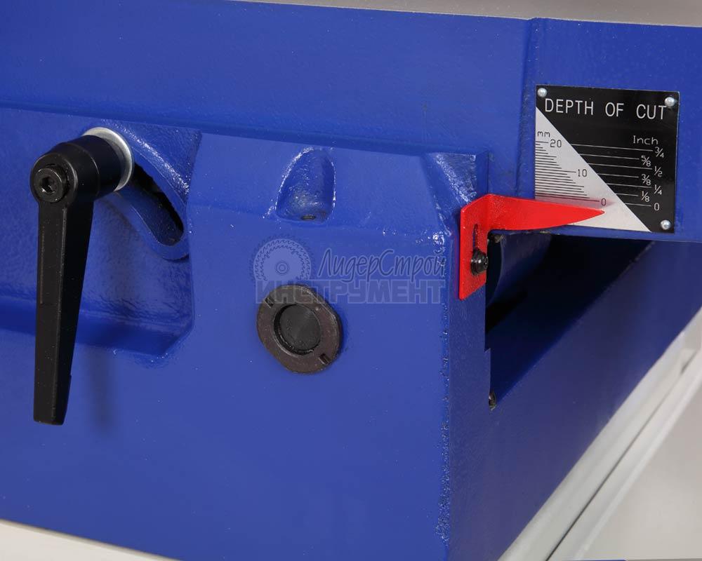 точная настройка толщины строгания благодаря шкале, которая регулирует положение подающего стола.