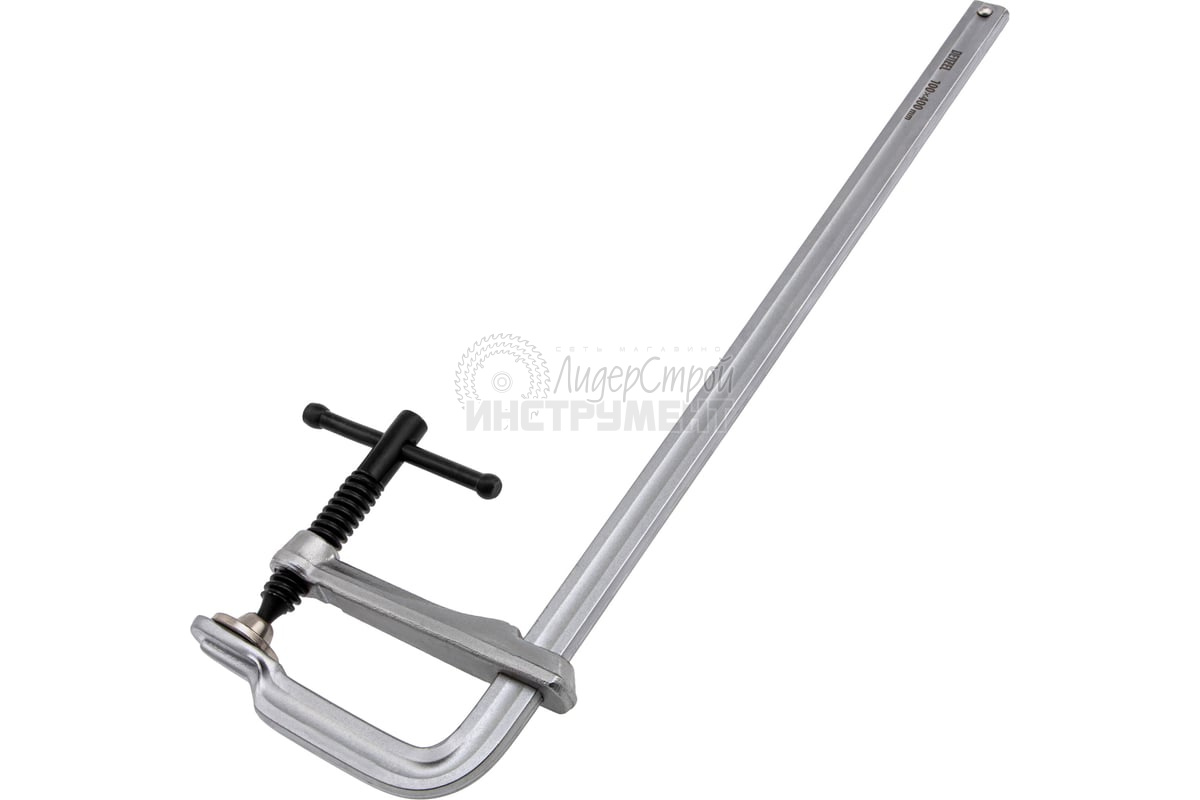 Кованая F-образная струбцина Denzel 20471 с глубиной зажима 100 мм, усиленная, предназначена для фиксации деталей шириной до 400 мм и материалов при проведении слесарных, столярных и сварочных работ. Тавровый профиль обеспечивает устойчивость конструкции к изгибу, что позволяет фиксировать детали со значительным усилием.