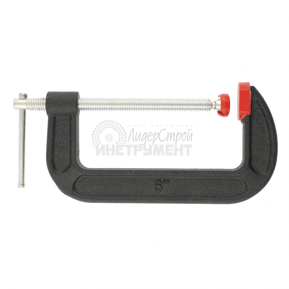 Корпус G-образной струбцины покрыт порошковой краской, стойкой к механическим повреждениям и надежно защищающей струбцину от коррозии. Губки снабжены накладками, предотвращающими повреждения обрабатываемых предметов. Винт струбцины с крупной червячной резьбой и воротком надежно фиксирует обрабатываемые детали.