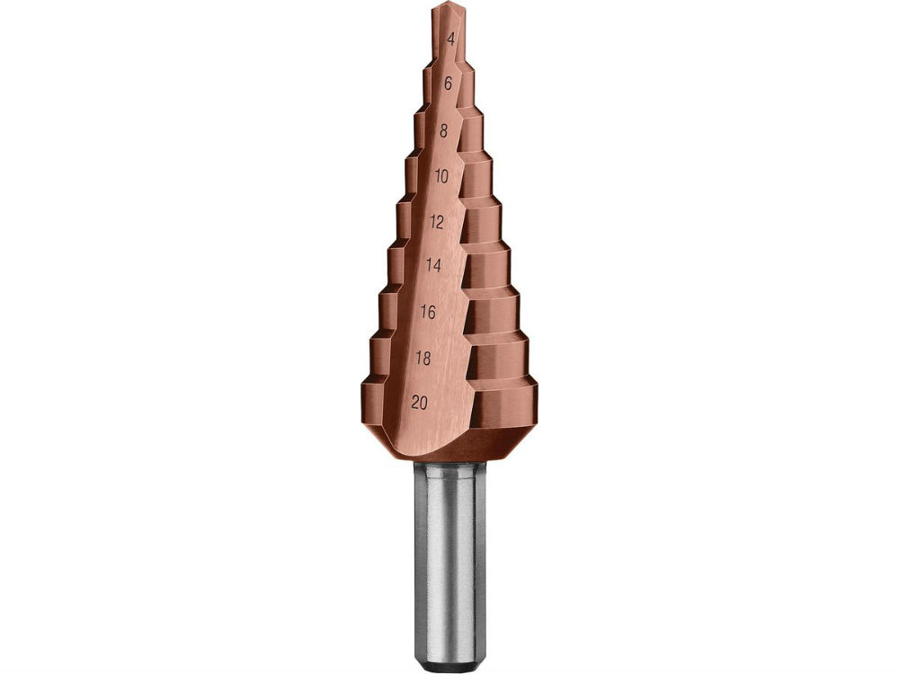 Сверло ступенчатое 4-20мм 9 ступеней Р6М5 с кобальтом ЗУБР Профи 29672-4-20-9_z01 29672-4-20-9_z01 купить по цене 1 470 руб - интернет-магазин ЛидерСтройИнструмент