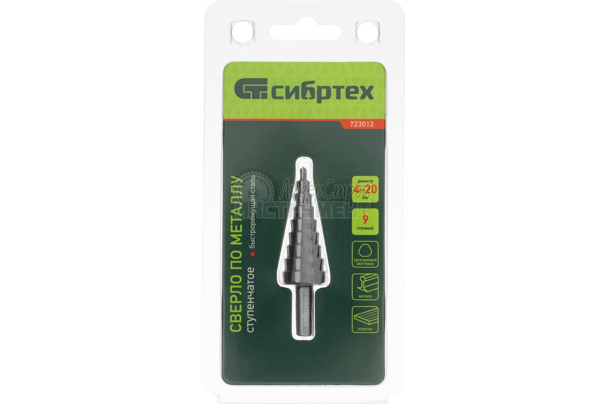 Сверло ступенчатое 4-20мм 9ступеней HSS СИБРТЕХ 723012 723012 купить по цене 424 руб - интернет-магазин ЛидерСтройИнструмент