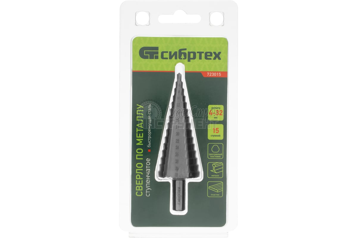 Сверло ступенчатое 4-32мм 15ступеней HSS СИБРТЕХ 723015 (отзывы)