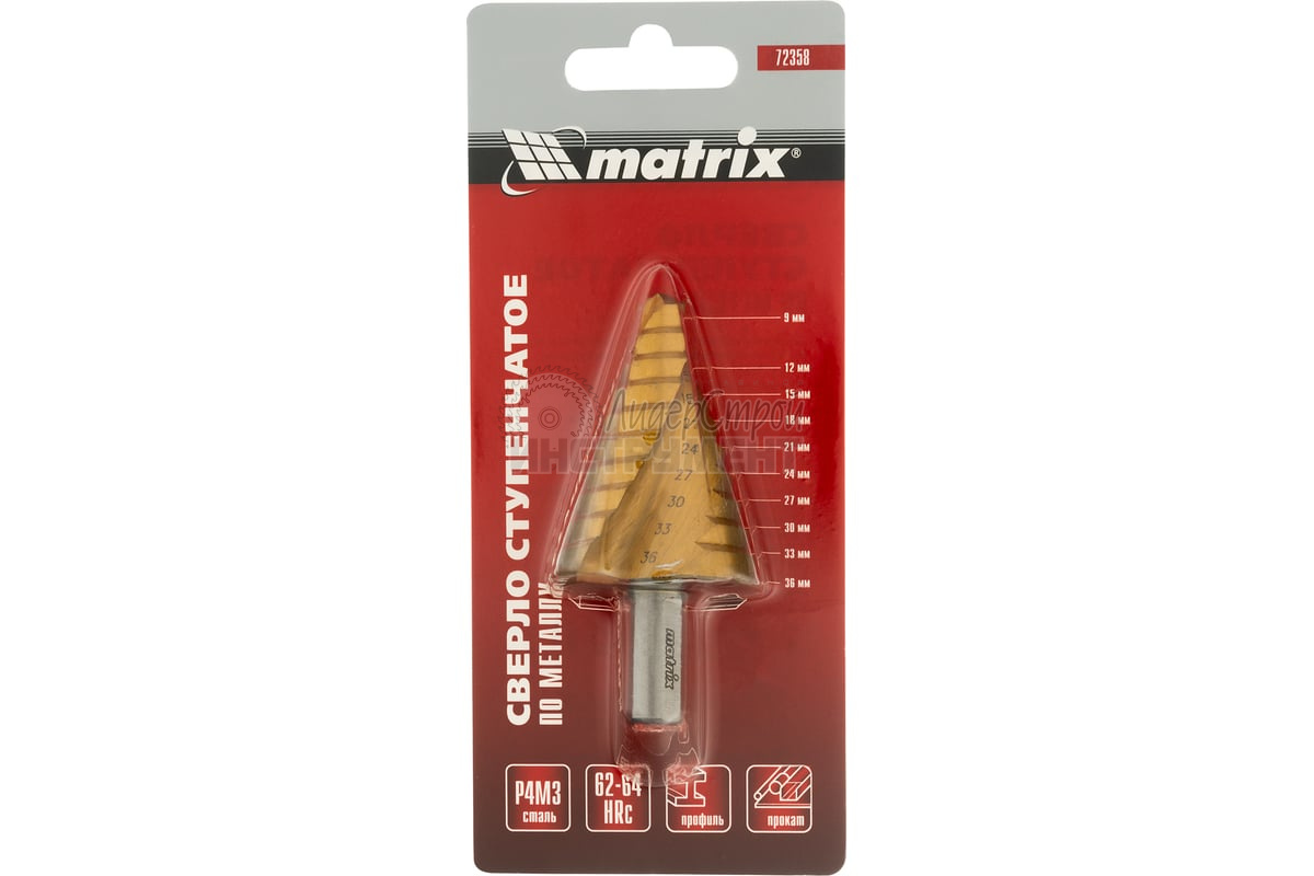 Сверло ступенчатое 9-36мм 10ступеней HSS MATRIX 72358 72358 купить по цене 1 360 руб - интернет-магазин ЛидерСтройИнструмент