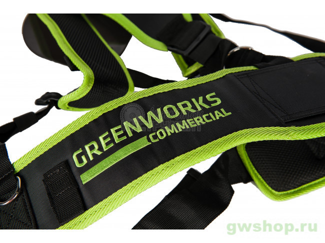Поясной держатель для батареи 82V GREENWORKS - служит для уменьшения нагрузки на плечи и более удобного использования инструмента. Пояс сшит из плотного материала.