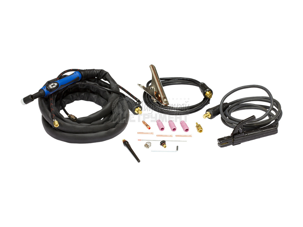 горелка в сборе TS 26 4 м 1 шт., клемма заземления в сборе 200 А 3 м 1 шт., электрододержатель в сборе 200 А 3 м 1 шт., комплект ЗИП 1 шт., инструкция