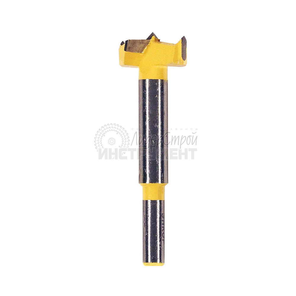 Используется для сверления глухих отверстий и петлей в дереве, фанере, ДСП. Диаметр – 25 мм Общая длина - 79 мм Диаметр хвостовика – 7.5 мм