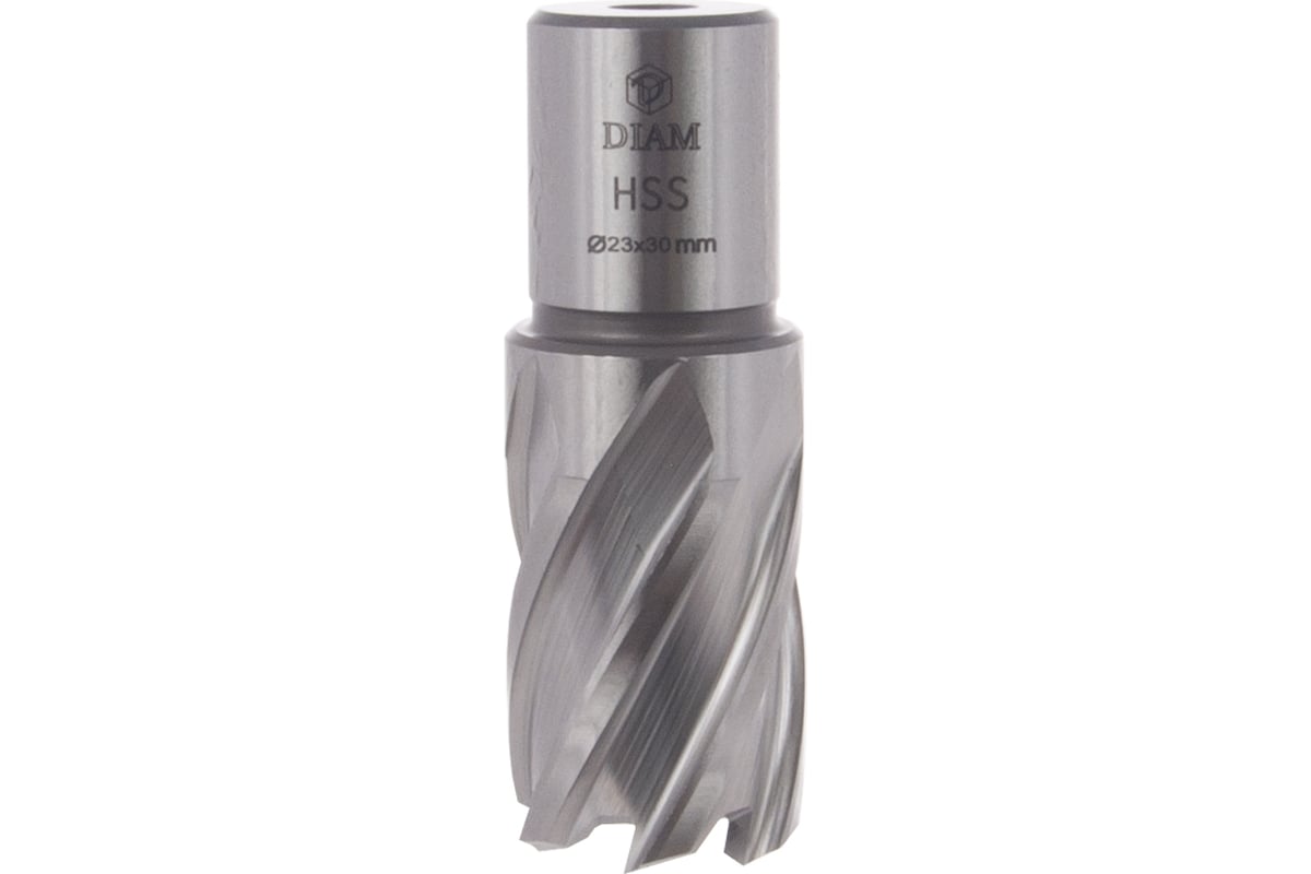 Сверло корончатое по металлу Extra Line (23x30 мм; HSS) DIAM 320294 предназначено для сверления отверстий в углеродистых и легированных сталях, алюминиевых сплавах на магнитных сверлильных станках.