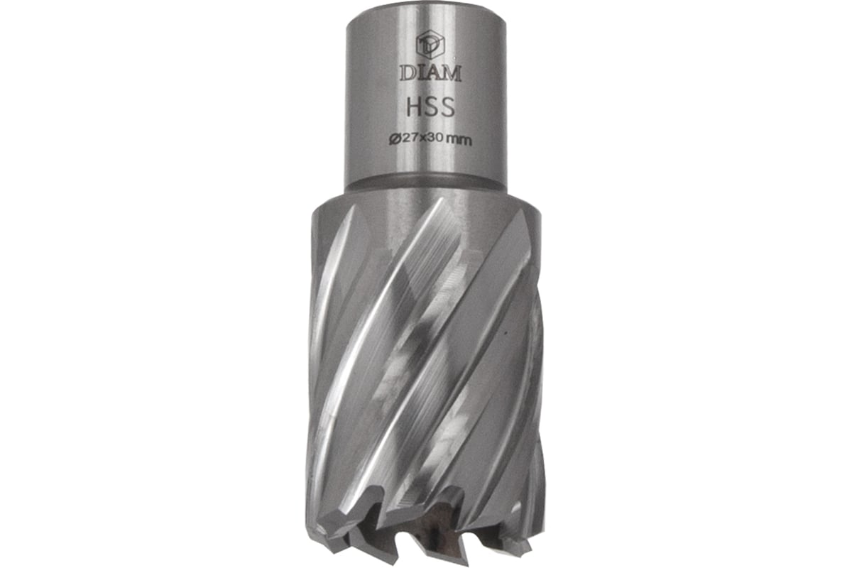Сверло корончатое по металлу Extra Line (27x30 мм; HSS) DIAM 320297 предназначено для сверления отверстий в углеродистых и легированных сталях, алюминиевых сплавах на магнитных сверлильных станках.