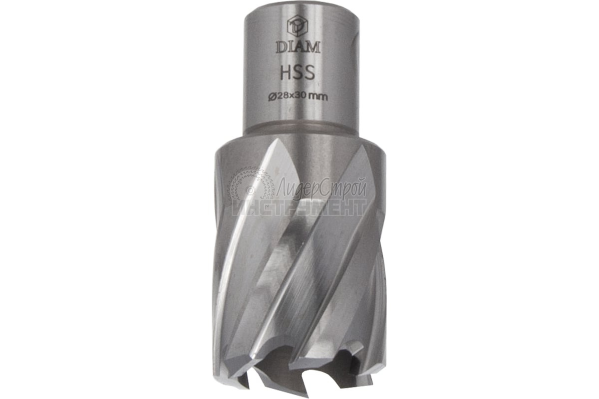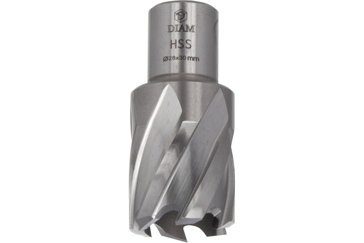 Сверло корончатое по металлу Extra Line (28x30 мм; HSS) DIAM 320298 предназначено для сверления отверстий в углеродистых и легированных сталях, алюминиевых сплавах на магнитных сверлильных станках.