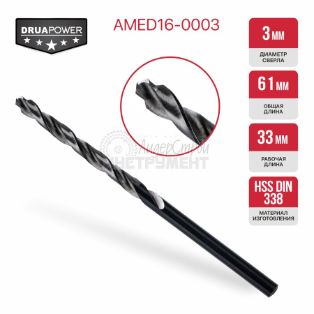 Сверло по металлу самоцентрирующееся 3х33х61мм HSS Drua SharkStep PIT AMED16-0003