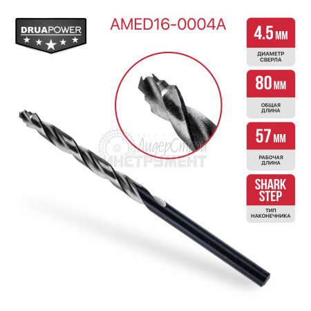 Сверло по металлу самоцентрирующееся 4,5х57х80мм HSS Drua SharkStep PIT AMED16-0004A