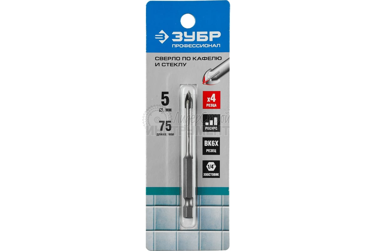 Отзывы: сверло по стеклу и керамике 5мм 4-х резцовый hex 1/4" зубр профи 29845-05_z01 в Уфе