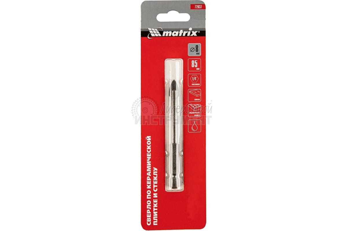 Сверло по стеклу и керамике 8мм HEX 1/4" MATRIX 72837 купить по цене 189 руб - интернет-магазин ЛидерСтройИнструмент