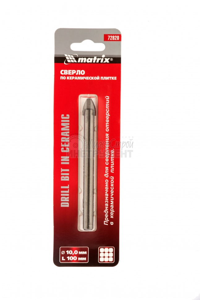 Сверло Matrix 72820 с цилиндрическим хвостовиком пригодится для сверления отверстий диаметром 10 мм в керамической плитке и стекле. Пикообразная форма режущей части обеспечивает быстрое засверливание. Сверло относится к среднему сегменту, поэтому оптимально для бытовых работ. Рекомендуется использовать его с шуруповертами и дрелями в безударном режиме на рабочих оборотах 550-1000 об/мин.