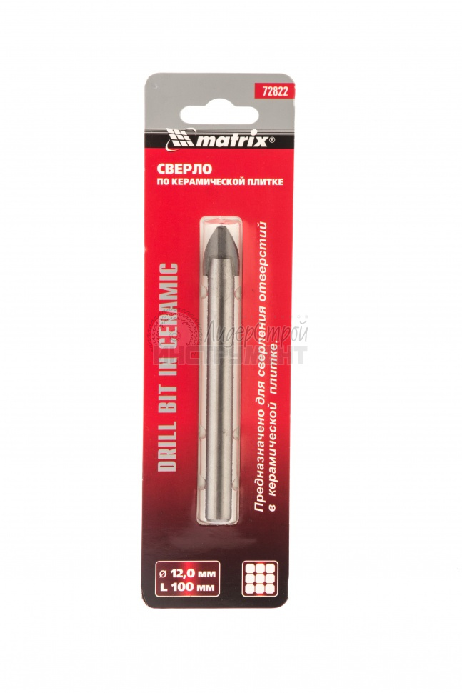 Сверло Matrix 72822 с цилиндрическим хвостовиком пригодится для сверления отверстий диаметром 12 мм в керамической плитке и стекле. Пикообразная форма режущей части обеспечивает быстрое засверливание. Сверло относится к среднему сегменту, поэтому оптимально для бытовых работ. Рекомендуется использовать его с шуруповертами и дрелями в безударном режиме на рабочих оборотах 550-1000 об/мин.