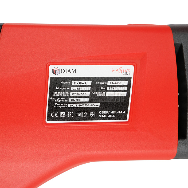 Мощная сверлильная машина DIAM ML-180N с ненаклонной стойкой, подойдет для сверления отверстий в бетоне, кирпичной кладке, железобетоне и аналогичными материалами. Сверлильная машина имеет одну скорость.
