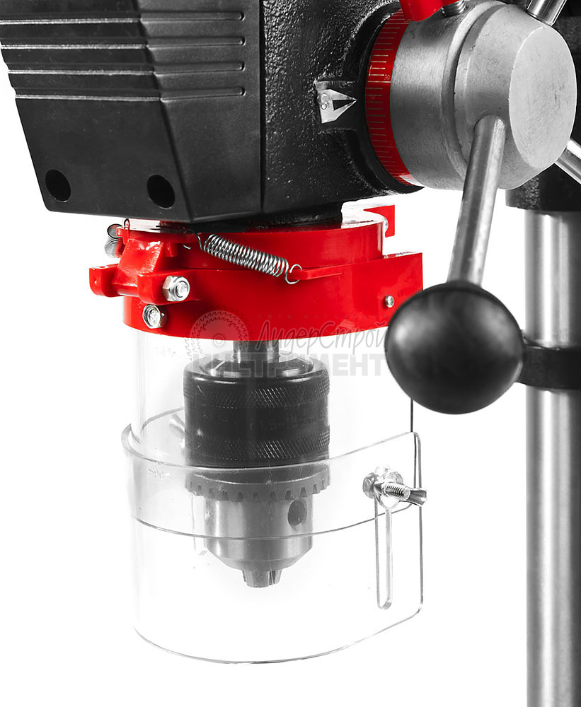 Во время работы сверлильный патрон закрыт защитным экраном.