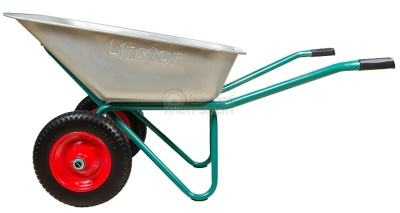 Стальной кузов толщиной 0,7 мм и объемом 90 л для сыпучих грузов имеет цинковое покрытие, обеспечивающее защиту тачки от внешних воздействий.