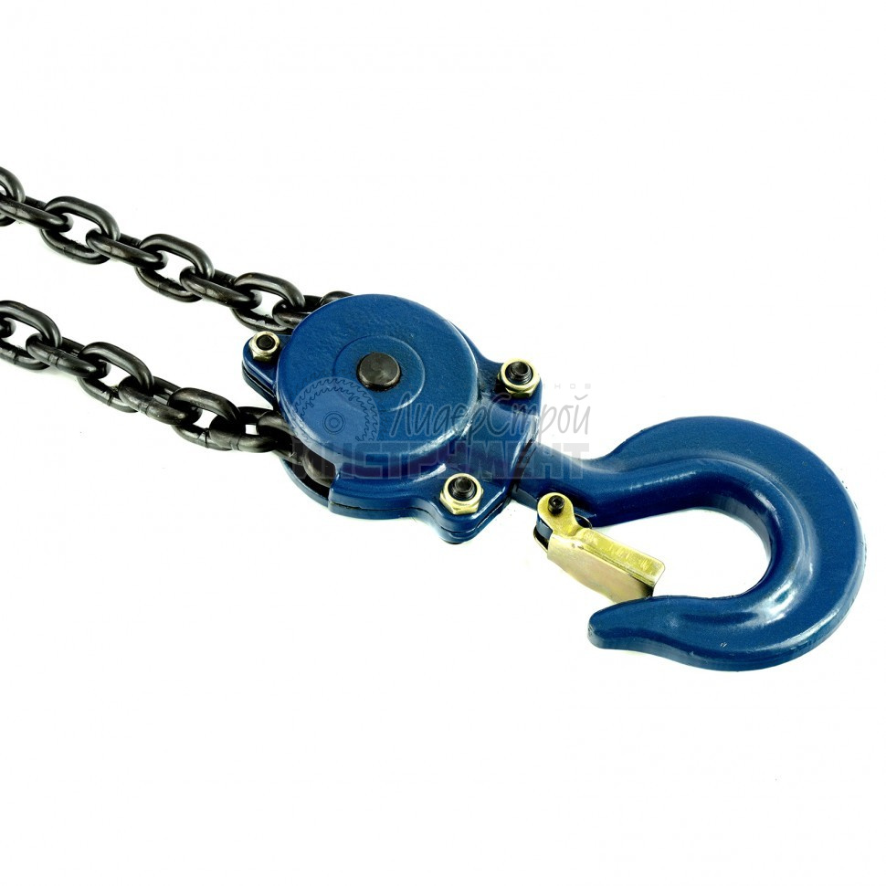 Ручное устройство для подъема грузов. Состоит из блока с двумя цепочками: управляющей и подъемной. Блок и сама цепь оснащены надежными крюками с усиленной защелкой для надежного крепления блока и груза. В устройство интегрирован тормоз для предотвращения случайного опускания или падения груза.