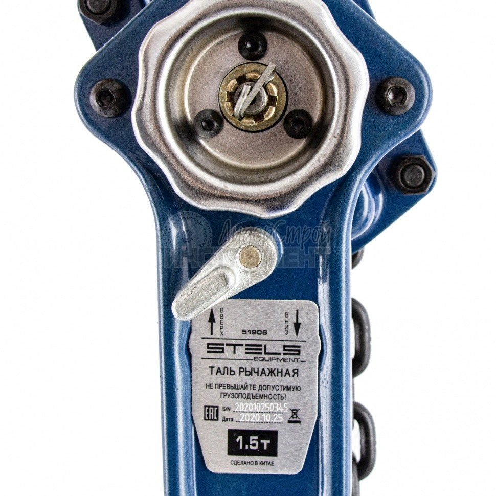 Цепная рычажная таль Stels 51906 используется для поднятий грузов массой не более 1,5 т на высоту до 1,5 м. Она пригодится в автосервисе, на складе или производстве, а также в других местах, где требуется подъем тяжестей без использования электричества.