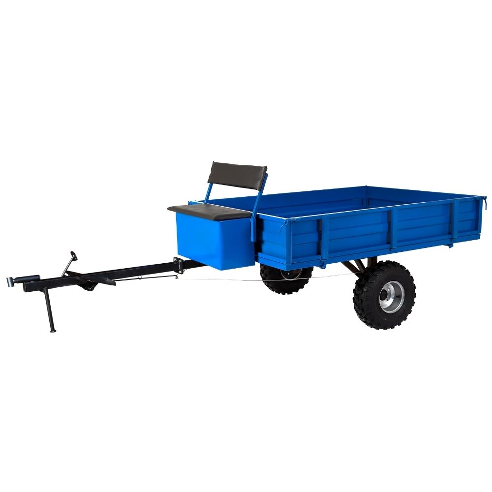 Тележка прицепного типа ТПМ3-343 FORZA (FORZA 5), рамной конструкции, с сидением-ящиком, тремя откидными бортами, самосвального типа. Подходит к мотоблокам Forza, Агро(Агрос), МБ1000, МБ1350, МТЗ и другим тяжелым мотоблокам массой более 150 кг.