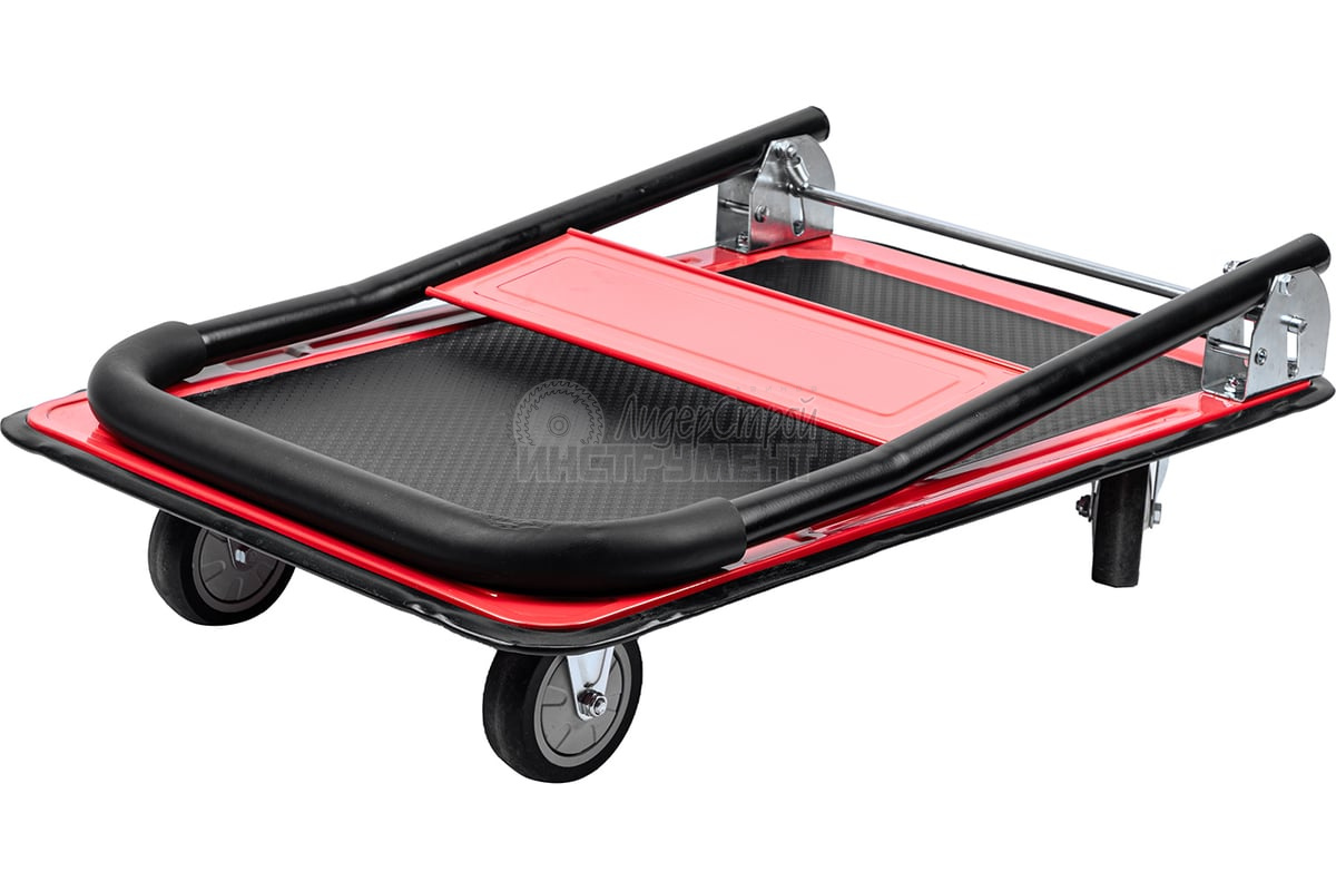 - Продуманная конструкция — противоскользящее покрытие платформы препятствует смещению груза во время транспортировки.