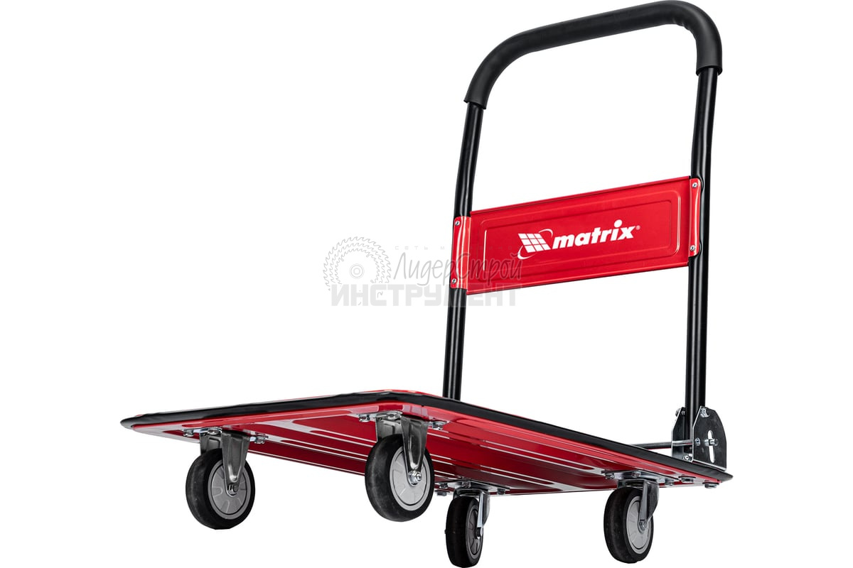 Хозяйственная тележка Matrix 98211 предназначена для перемещения грузов массой до 150 кг. На платформе размером 730 x 475 мм можно разместить даже крупногабаритные предметы.