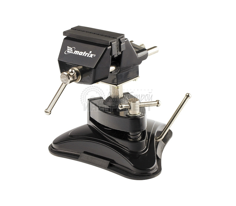 MATRIX арт. 18506 ‒ слесарные тиски для дома и небольшой мастерской. Фиксируют детали для обработки. Основное назначение ‒ обработка мелких предметов, например, при изготовлении ювелирных изделий или работе с радиодеталями.