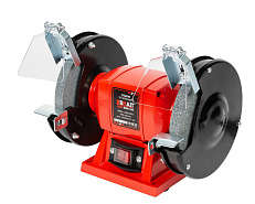 Абразивные круги защищены металлическими кожухами. Пластиковые экраны оберегают глаза от попадания искр и абразивов. Благодаря своему небольшому весу этот станок прекрасно подходит для использования в домашних условиях, а также в гаражах, загородных домах и небольших мастерских.