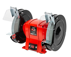 Имеет два абразивных рабочих круга диаметром 200 мм. Для безопасности и защиты от искр круги закрыты прозрачными пластиковыми щитками.
