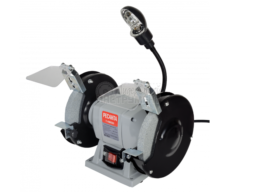 Устройство оснащено производительным электродвигателем мощностью 250 Вт и шлифовальными дисками разной зернистости диаметром 150 мм для затачивания, шлифовки и зачистки различных приборов и поверхностей. В комплект входит лампа для подсветки рабочей зоны. Благодаря регулируемым опорам для фиксации затачиваемого материала, прозрачным экранам и защитным кожухам обеспечивается комфорт при эксплуатации инструмента. Легко поддается транспортировке за счет малого веса и небольших размеров.