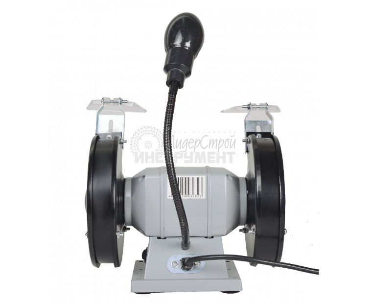Имеет два абразивных рабочих круга диаметром 200 мм. Для безопасности и защиты от искр круги закрыты прозрачными пластиковыми щитками.